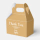 Elevate your 21st birthday celebration with our gold and white Elegant 21st Birthday Favour Boxes. These chic and stylish boxes are not just containers; they're a statement of elegance and gratitude that will leave a lasting impression on your special day. Crafted in a minimalist gold and white palette, these favour boxes exude sophistication and style. The sleek design is the perfect canvas for your personalised touch, allowing you to create unique and special party favours that reflect your taste. The heart of these favour boxes lies in the text template. On one side, a large thank you message is beautifully printed in a pretty cursive script, expressing your gratitude to your guests. On the other side, several custom text fields await your personalisation. Add your name, a heartfelt message, and your signature to create a favour box that is uniquely yours. Our Elegant 21st Birthday Favour Boxes are a reflection of your elegant taste and appreciation for your guests. Each box is a gift of elegance and gratitude, embodying the essence of your special celebration. Give your guests a piece of your heart wrapped in elegance with our exquisite favour boxes. The perfect fusion of style and appreciation, they're a touch of sophistication that enhances your 21st birthday festivities.