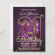 Celebrate in style with our stunning customisable 21st birthday invitation, designed to make your milestone moment unforgettable. Picture this: a luxurious purple gemstone, sparkling with the brilliance of a thousand stars, gracefully adorning the front of your invitation. The number "21" is prominently displayed in a dazzling, faceted pattern that catches the eye and exudes elegance, wrapped in a golden embrace that adds a touch of sophistication to your celebration.