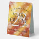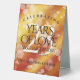 Add an extra special touch to 23rd imperial topaz wedding anniversary celebrations with this stylish table tent sign! Elegant lettering with hexagonal confetti on a deep yellow-red-orange moire background add a memorable touch for this special occasion and extraordinary milestone. Customise with couple's names, dates of marriage, and congratulatory messages.