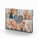 Customisable Elegant Celebrating 25th Anniversary 4 Photo Silver Heart Glitter White Frame Photo Block. A special and memorable photo collage gift for the 25th Anniversary. The design features a four-photo collage layout to display four of your own special photos. Colours can be changed to suit your preference.