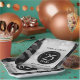 Celebrate their 25th silver wedding anniversary with these stylish paper plates! Elegant black and white lettering with hexagonal confetti on silver foil and black backgrounds add a memorable touch for this special occasion and extraordinary milestone. Personalise with couple's names and dates of marriage.