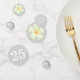 Wedding White Frangipani Plumeria Flowers, hearts, silver pearls 25th wedding anniversary Table Confetti. Text can be personalised for wedding, anniversary, baby shower, sweet 16 and Birthdays. Frangipani flowers stand for beauty and perfect love.