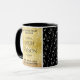 Celebrate the 27th music wedding anniversary with a couple of these stylish mugs! Elegant black lettering with musical note confetti on a gold foil background edged by black bars add a memorable touch for this special occasion and extraordinary milestone. Personalise with the couple's names, dates of marriage, and congratulatory messages.