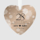 Celebrate the 28th linen wedding anniversary with this stylish ornament! Elegant black lettering with hexagonal confetti on an off-white linen background add a memorable touch for this special occasion and extraordinary milestone. Personalise with couple's names and wedding date. Reverse shows identical design. Use as is, or replace with a photo. This design is optimised for the circle, oval, heart, and shirt shapes.