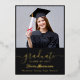 Celebrate your achievement in style with this Elegant 2 Photo Graduation Party Modern Black Foil Invitation. Featuring a sleek black background with luxurious foil-style accents, this invitation blends modern sophistication with personal charm. Showcase two of your favourite graduation photos alongside custom details like your name, class year, and party information. Perfect for high school or college grads, this design adds a refined touch to your celebration and sets the tone for a memorable event. Fully customisable for a personal, polished look.