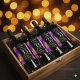 Celebrate the 33rd amethyst wedding anniversary with these commemorative drink labels! Elegant white lettering with gold-dusted hexagonal confetti on an amethyst purple background add a memorable touch for this special occasion and extraordinary milestone. Customise with couple's names and dates of marriage.