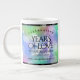 Celebrate the 34th opal wedding anniversary with a couple of these stylish giant coffee mugs! Elegant lettering with hexagonal confetti on an iridescent opal background add a memorable touch for this special occasion and extraordinary milestone. Personalise with the couple's names, dates of marriage and/or congratulatory messages. Reverse shows identical design.