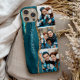 Elegant 3 Photo Collage Names Teal Gold Agate Case-Mate iPhone Case