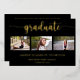 This elegant graduation announcement features a black and gold foil theme.  Add 3 photos and personalise text on the front/back to share all the details of your graduation day.