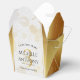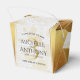 Celebrate their 3rd leather wedding anniversary with these stylish favour boxes! Elegant lettering with gold-dusted hexagonal confetti on a luxurious white leather background edged by gold foil add a memorable touch for this special occasion and milestone. Reverse panel shows identical design. Customise with couple's names, dates of marriage, and messages.