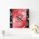 Celebrate the 40th or 80th wedding anniversary with this commemorative clock! Elegant black serif lettering with hexagonal confetti on a ruby red background edged by black bars add a memorable touch for this special occasion and extraordinary milestone. Customise with the happy couple's names, and add dates for their ruby anniversary. Personalised messages can be added to the top and bottom of the clock.