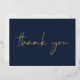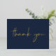 Show your gratitude in style with this elegant dark blue thank you card, perfect for your 40th birthday party. The front features "thank you" in a chic modern script, rendered in your choice of genuine gold, silver, or rose gold foil. On the back, you can add a personal message and your name in a handwritten-style font.