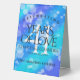 Add an extra special touch to 41st blue topaz wedding anniversary celebrations with this stylish table tent sign! Elegant lettering with hexagonal confetti on a cerulean blue background add a memorable touch for this special occasion and extraordinary milestone. Customise with couple's names, dates of marriage, and congratulatory messages.