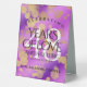 Add an extra special touch to 48th amethyst wedding anniversary celebrations with this stylish table tent sign! Elegant lettering with gold-dusted hexagonal confetti on an amethyst purple background add a memorable touch for this special occasion and extraordinary milestone. Customise with couple's names, dates of marriage, and congratulatory messages.