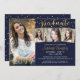 Elegant 4 Photo Graduate Navy Blue Gold Confetti Invitation
