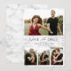 Elegant and stylish, featuring hand lettered script typography, your names in navy blue, and a collage of 4 of your favourite engagement photo, this modern design is easy to personalise, and features a faux Carrera marble background texture. Copyright Anastasia Designs, all rights reserved.