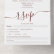 Elegant Chic red burgundy white elegant classic in one calligraphy wedding invitation with rsvp and initials monogram. With a modern and trendy script, add 4 of your photos.