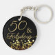 Elegant 50 and Fabulous Black and Gold Glitter Key Ring