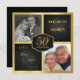 Create your own elegant gold and black 50th Wedding Anniversary Party and Marriage Vows Renewal Ceremony invitations with "then and now" photos inserts -- Customise the name, date, and details for your Golden Wedding Anniversary or other special anniversary and milestone celebrations. Can be easily customised for other special occasions -- 10th, 15th, 20th, 30th, 35th, 40th, 45th, 50, 55th, 60th, 65th. **NOTE: Sized for SQUARE invitation cards--extra postage required. Other sizes and styles available.