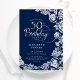 Elegant 50th Birthday Navy Silver Roses Invitation