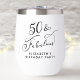 Fifty & Fabulous - Toast to a Life Well Lived! Elegant thermal wine tumbler for her 50th birthday party featuring "50 & Fabulous" in a stylish calligraphy script and her name in simple modern typography.