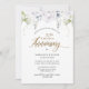 Celebrate the joy of your wedding anniversary with this beautiful elegant anniversary invite! Ability to add any anniversary number you need. Design with exquisite watercolor greenery and white flowers with a bit of blue hues framing your anniversary details. Your "number Wedding Anniversary" phrase in a beautiful blend of e faux gold handwritten calligraphy and block typography. Elegant back with same greenery and floral detail from the front and golden "number wedding anniversary" phrase. Part of our "Elegant Bliss" collection with great variety of coordinating products, from mailing accessories to all event signs and products for the special event.