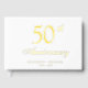 Elegant white foil guest book for your 50th wedding anniversary party featuring your choice of genuine gold, silver or rose gold foil, "50th Anniversary" in a chic calligraphy script, your names in classic serif typography, your wedding and anniversary years in modern lettering, and your customised title on the spine.