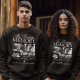 Funeral photo black sweatshirt featuring 5 pictures of your lost loved one, the text "in loving memory", their name, birth/death dates, a white heart, and the remembrance saying "gone but never forgotten".