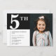 Elegant 5th birthday invitation Black Chic Modern calligraphy typography classic elegant girl