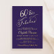 Elegant purple 60th birthday party invitation that features "60 & Fabulous" and your name in chic calligraphy scripts and the event details in simple modern lettering, all rendered in your choice of genuine gold, silver or rose gold foil.