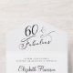 Elegant and chic sixtieth birthday party all in one invitation with "60 & Fabulous" in a stylish calligraphy script on the top inner flap. Personalise the birthday party invitation and details in a mix of simple modern typography and pretty script. A tear away RSVP postcard provides a convenient and envelope-free response from your guests.