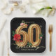 Elegant 60th Birthday Party Black Gold Red Rose Paper Plate