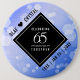 Celebrate the 65th blue sapphire wedding anniversary with this stylish button! Elegant black and white lettering with hexagonal confetti on a sapphire blue background add a memorable touch for this special occasion and extraordinary milestone. Personalise with the couple's names and dates of marriage.