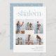 Share cheer with these modern Hanukkah holiday cards featuring 6 of your favourite photos in a grid collage layout. "Shalom" appears at the top in connected lettering adorned with tiny stars. Personalise with your holiday greeting, family name and the year at the lower right.