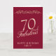 Elegant 70 and Fabulous Ornament 70th Birthday Card. 70 and fabulous text in trendy golden script and an elegant ornament on red background. Personalise it with your name and your age, and make personalised elegant birthday card. Add your birthday note inside the card or erase it.