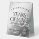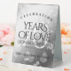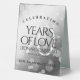 Add an extra special touch to 70th platinum wedding anniversary celebrations with this stylish table tent sign! Elegant lettering with hexagonal confetti on a platinum foil background add a memorable touch for this special occasion and extraordinary milestone. Customise with couple's names, dates of marriage, and congratulatory messages.