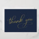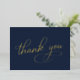Show your gratitude to your 75th birthday party guests in style with this elegant dark blue thank you card. The front features "Thank You" showcased in a calligraphy script, rendered in genuine gold, silver, or rose gold foil. On the back, you can add a personal message and your name in a lovely, handwritten-style font.