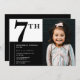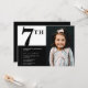 Elegant 7th birthday invitation Black Chic Modern calligraphy typography classic elegant girl