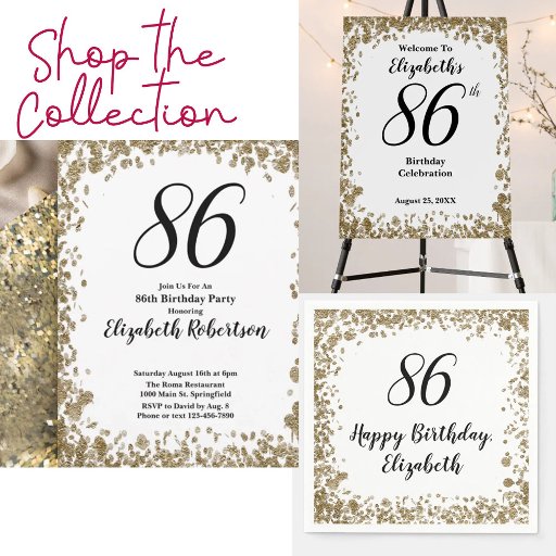 86th Birthday Gold Glitter Glam CelebrationDesigned by Kara Buntin