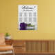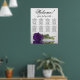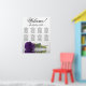 This stunning wedding seating chart includes 8 tables and showcases a modern and romantic floral design. A long-stemmed, royal purple rose is displayed on its side, reflecting in a pool of water, adding to the elegance of the chart. The title, "Welcome! please find your table," is written in elegant script calligraphy, while the names of the couple and the date of the wedding are located at the bottom. With seating arrangements for 80 people and 10 seats per table, this seating chart is a fantastic way to greet guests and help them locate their seats at the reception.