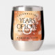 Make the 8th bronze wedding anniversary an unforgettable celebration with this commemorative stainless steel stemless wine tumbler! Elegant lettering with hexagonal confetti on a bronze foil background add a memorable touch for this special occasion and milestone. Customise with couple's names, dates of marriage, and congratulatory message. Reverse shows identical design.