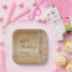 These elegant and luxurious square gold glitter and diamond sided 7" paper plates are perfect for your celebration. Their chic and modern fonts are crisp and clean and making them unique and one-of-a-kind just like your loved one.