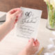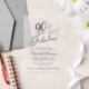 Elegant and chic 90th birthday party vellum invitation featuring "90 & Fabulous" and her name in classic calligraphy scripts and her party details in simple, modern typography. Overlay it on her favourite photo for a sophisticated and timeless touch.