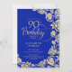 Elegant 90th Birthday Royal Blue Gold Roses Invitation