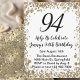 This pretty and elegant 94th birthday invitation for her is perfect for a nice party and will set a celebratory tone. The text is larger so you won't need to squint to see it!