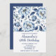 Elegant 98th birthday invitations Floral Vintage Blue rustic watercolor