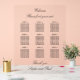 Elegant 9 Table Seating Chart Acrylic Sign, please personalise the names of the couple and the names of the guests along with any of the other text that you may wish to personalise. An elegant seating chart featuring stylish black text in a clean minimalistic layout on a clear transparent background.