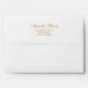 Elegant A7 golden script return address envelope. Address on the backside in golden script. Personalise these custom wedding envelopes with your address. An elegant border in golden colour is on the front side. The inside of the envelope is in golden colour.