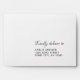 Elegant return address envelope for RSVP with an address on the front side. Personalise with your address and change or erase the text Kindly deliver to if you want. Inside the envelope is a beige colour.