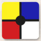 Elegant abstract black, blue, yellow, red, & white Squares. Basic colours!